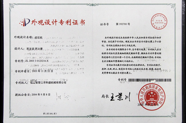 切石機(jī)實(shí)用專利證書