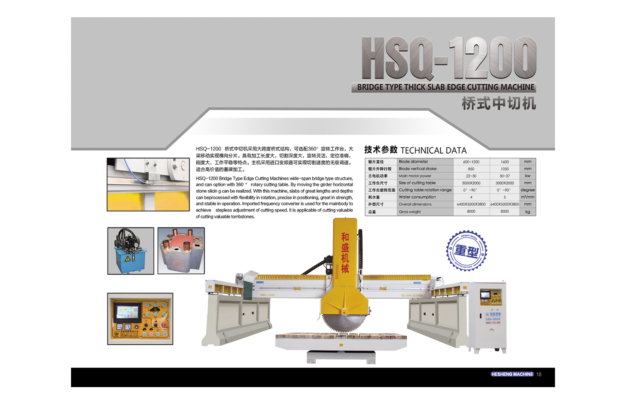 HSQ-1200/1600 橋式中切機(新式重型)【中切機;路徑切石機;路徑機】