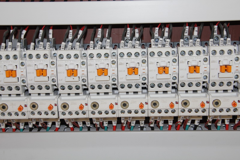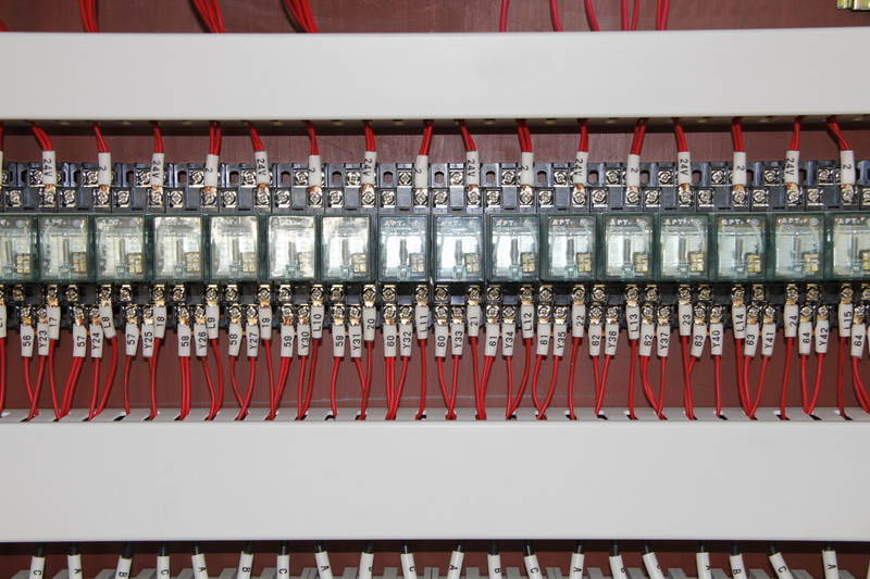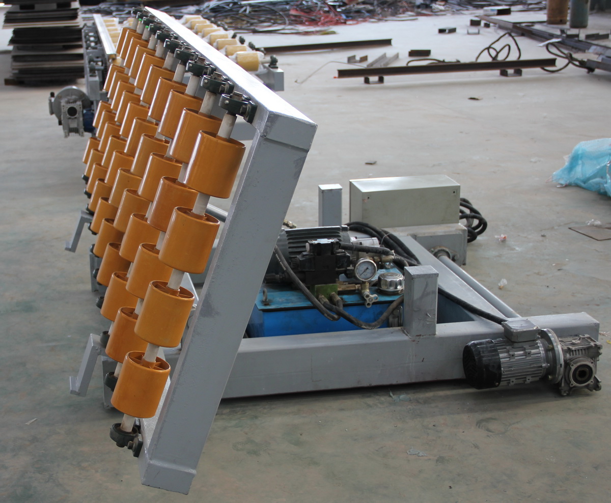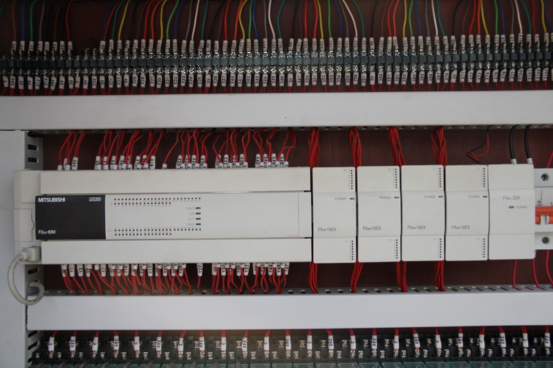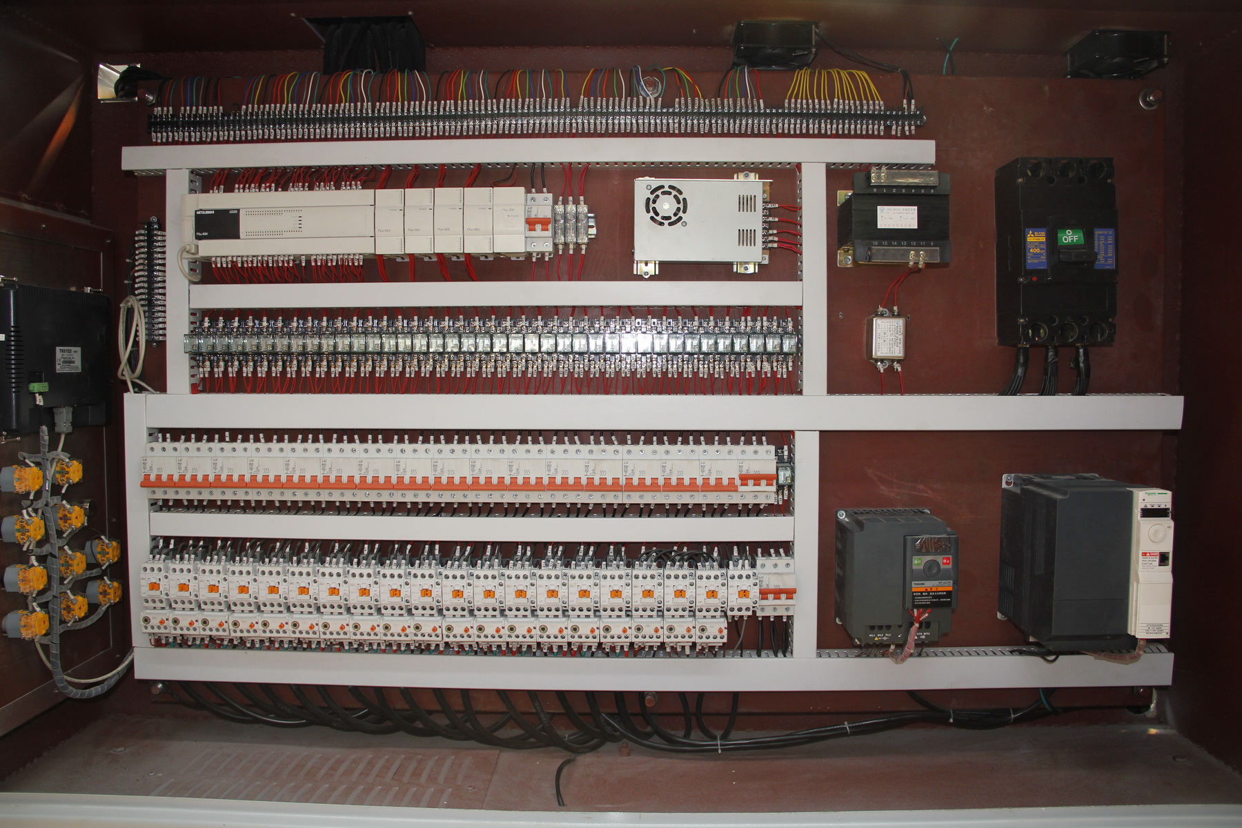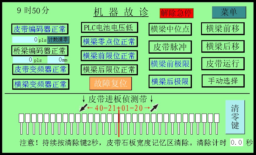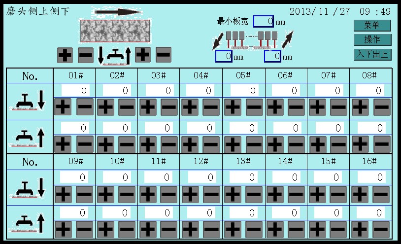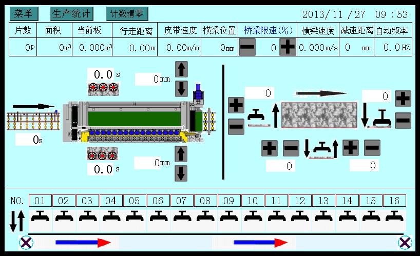 3.該機控制系統(tǒng)采用PLC終端控制,以液晶顯示觸摸屏終端為人機界面進行參數(shù)設(shè)定,設(shè)備運行過程中設(shè)有故障提示等等。該機適用于花崗石條板的連續(xù)磨削及拋光。板材輸送帶、磨盤橫移梁的工作速度均為變頻器調(diào)速;磨盤工作壓力、板材的磨削寬度在設(shè)定值范圍內(nèi)可調(diào)。本機可對板材形狀自動識別,每個磨盤(磨頭)可根據(jù)識別板材的形狀自動升降,同時對板材磨削進行跟蹤記錄。整機均按標(biāo)準(zhǔn)化生產(chǎn),性能穩(wěn)定、故障率低等優(yōu)點。